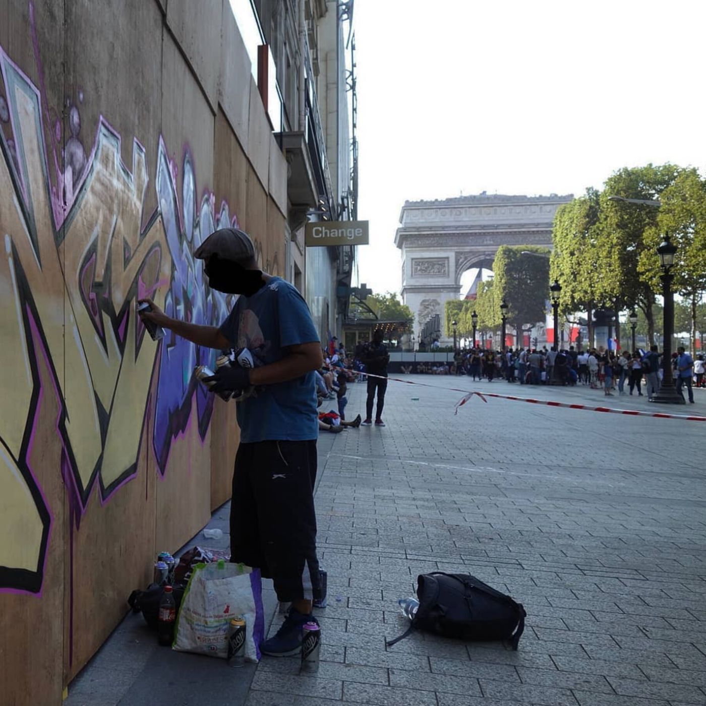 L’un des moments les plus emblématiques d’ENCS reste sa fresque réalisée aux Champs-Élysées pendant la finale de la Coupe du Monde avec Disek et Aigre, un véritable exploit artistique en plein cœur de l’effervescence parisienne. Célébré par la victoire de la France, ce moment a marqué l’histoire du graffiti parisien.