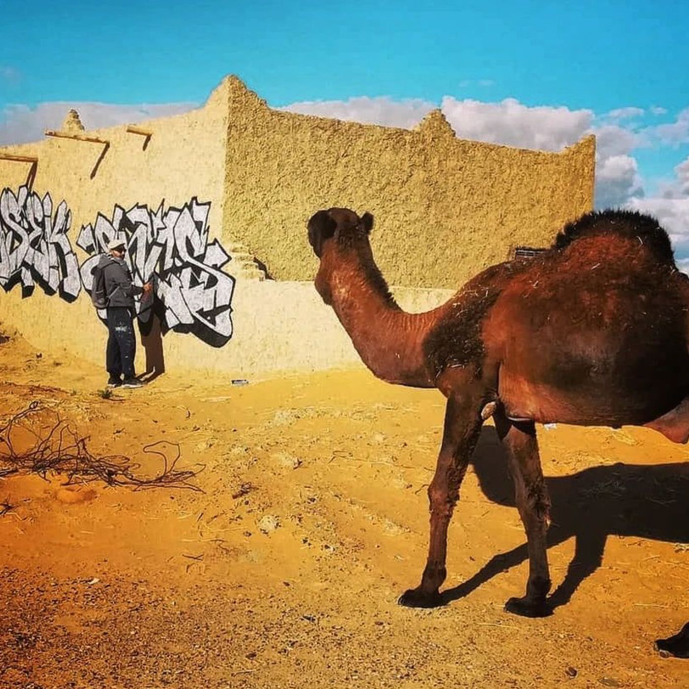 Souvenir inoubliable avec @d.i.s.e.k dans le désert de Merzouga au Maroc pour l’épisode de “J’irai graffer chez vous” disponible sur sa chaîne YouTube.